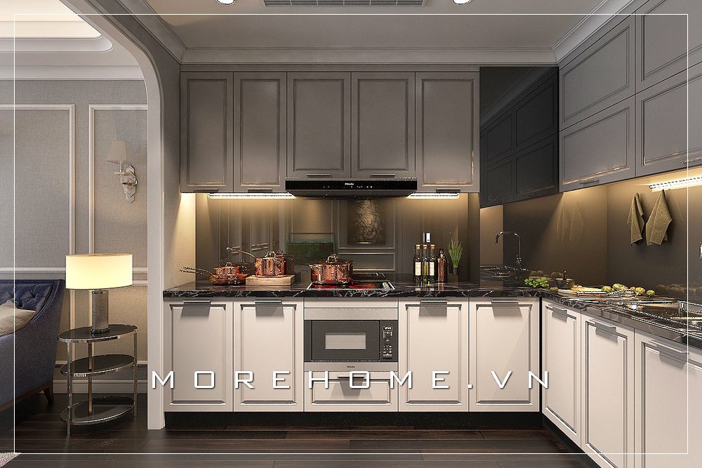 Tủ bếp màu trắng đang là xu hướng thời thượng và được nhiều gia đình lựa chọn. Màu trắng gợi đến sự rộng rãi, tạo cảm giác thoáng mát và hài hòa cho không gian bếp. Ngoài ra chúng còn tôn thêm vẻ sang trọng, lịch sự khiến phòng bếp trông hiện đại và nổi bật hơn nhiều.