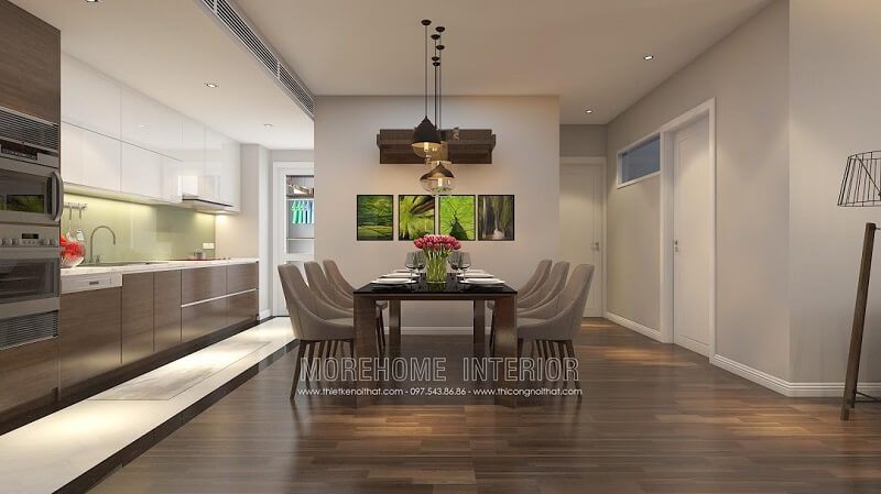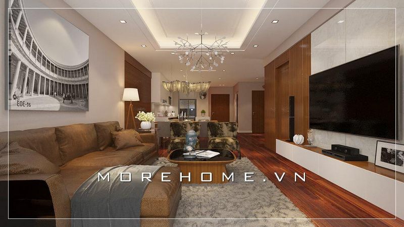 Mẫu thiết kế nội thất chung cư hiện đai sử dụng gỗ tự nhiên kết hợp công nghiệp An Cường cao cấp mang đến vẻ đẹp sang trọng.