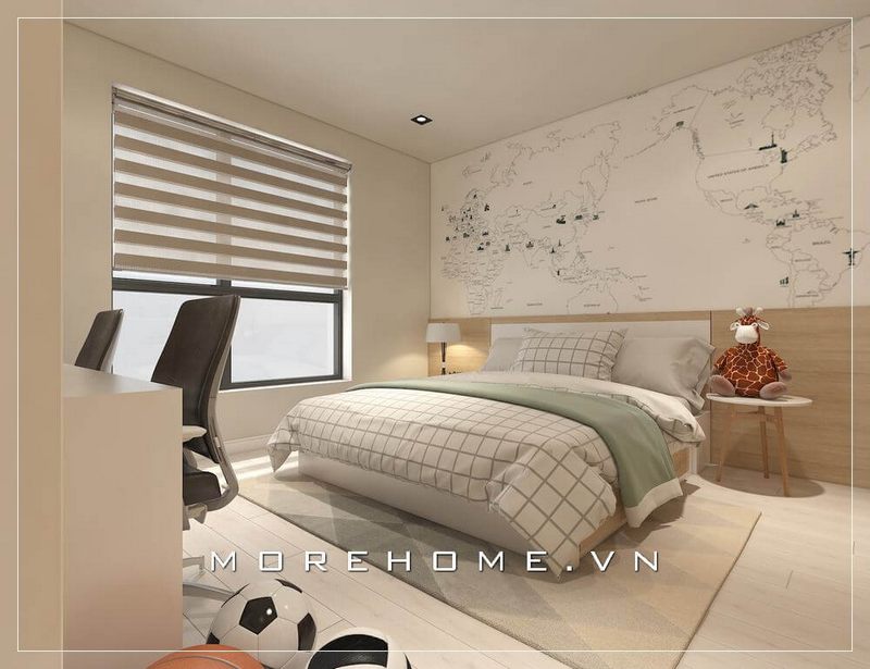 Thiết kế giường ngủ đẹp cho phòng ngủ con trai tại biệt thự cao cấp