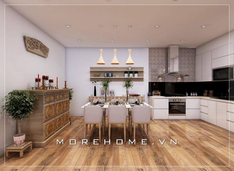Mang đến không gian phòng bếp lý tưởng với mẫu thiết kế nội thất phòng bếp hiện đại với hệ tủ bếp gỗ công nghiệp thông minh tích hợp nhiều công năng.