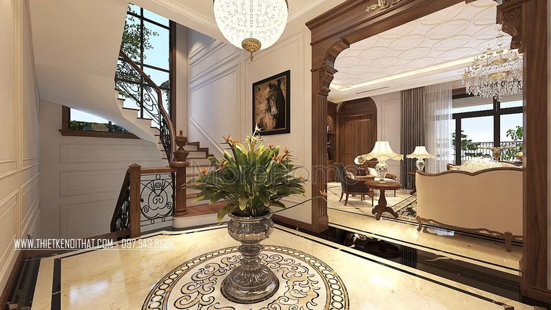 Thiết kế nội thất phòng khách biệt thự,nhà phố đẹp theo phong cách tân cổ điển với đồ nội thất sang trọng, xu hướng được nhiều gia chủ tìm kiếm cho trang trí nhà.