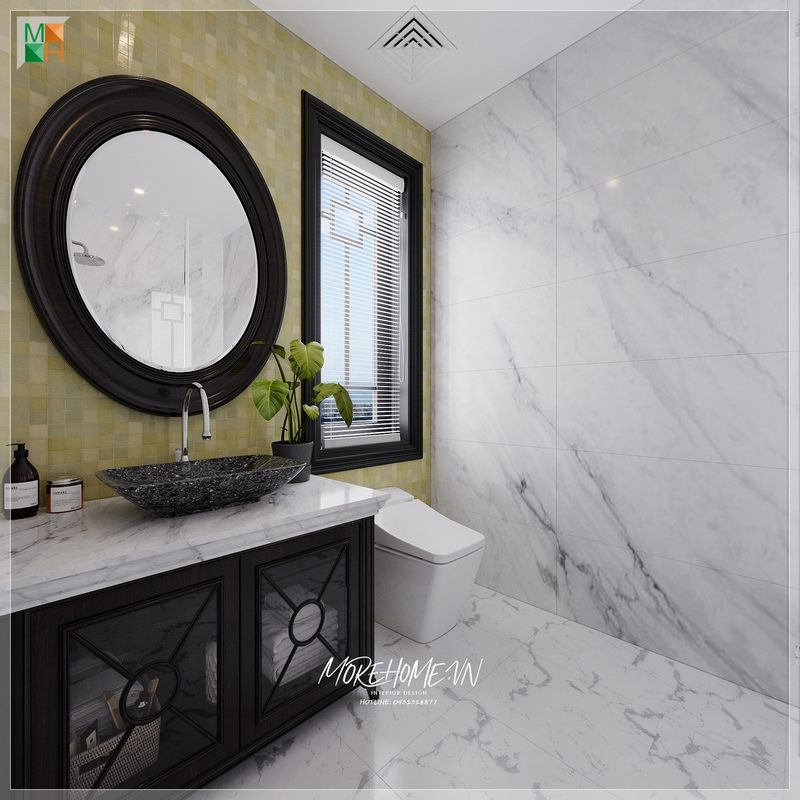 Mẫu thiết kế nội thất phòng tắm chung cư nhỏ gọn màu trắng sang trọng, lôi cuốn