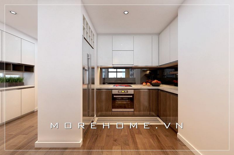 Mẫu tủ bếp chữ i được thiết kế âm tường là đồ gỗ nội thất thường tìm thấy trong những căn nhà có diện tích nhỏ