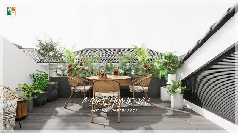 Một không gian nghỉ ngơi thư giãn sau một ngày làm việc tại chính ngôi nhà của mình ai cũng mong muốn với thiết kế sân thượng với nhiều cây xanh thoáng mát dễ chịu