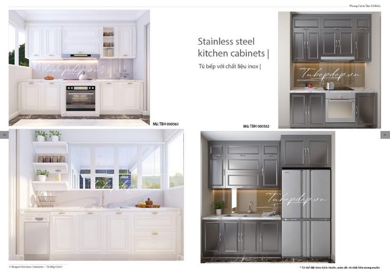 Hai mẫu thiết kế phòng bếp tân cổ điển thoáng đãng trẻ trung hơn với màu sắc tươi nổi bật tạo sự mát mẻ cho không gian