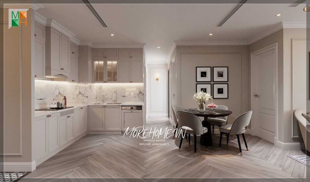 Sàn gỗ xương cá mang lại vẻ đẹp mới lạ, sang trọng và ấn tượng cho không gian.